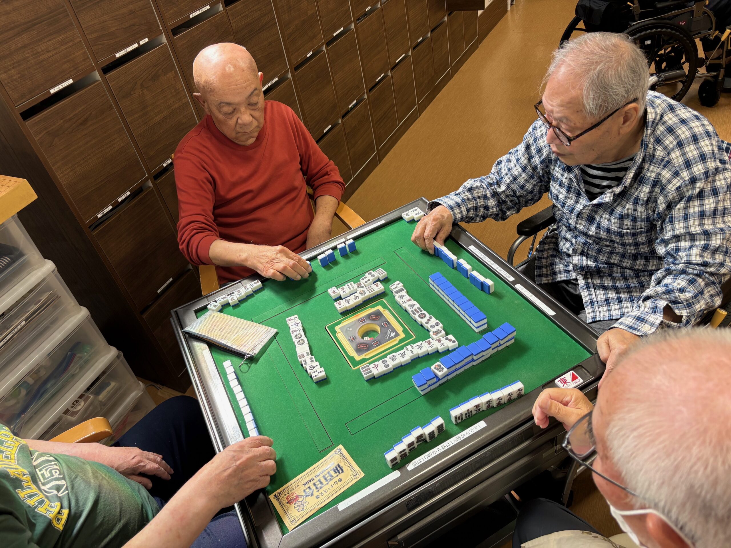 脳トレ・麻雀・スロットマシン・将棋・囲碁など利用者様に合わせた個別レクリエーションを実施しています。全体でも様々なレクリエーションを日替わりで行っています。